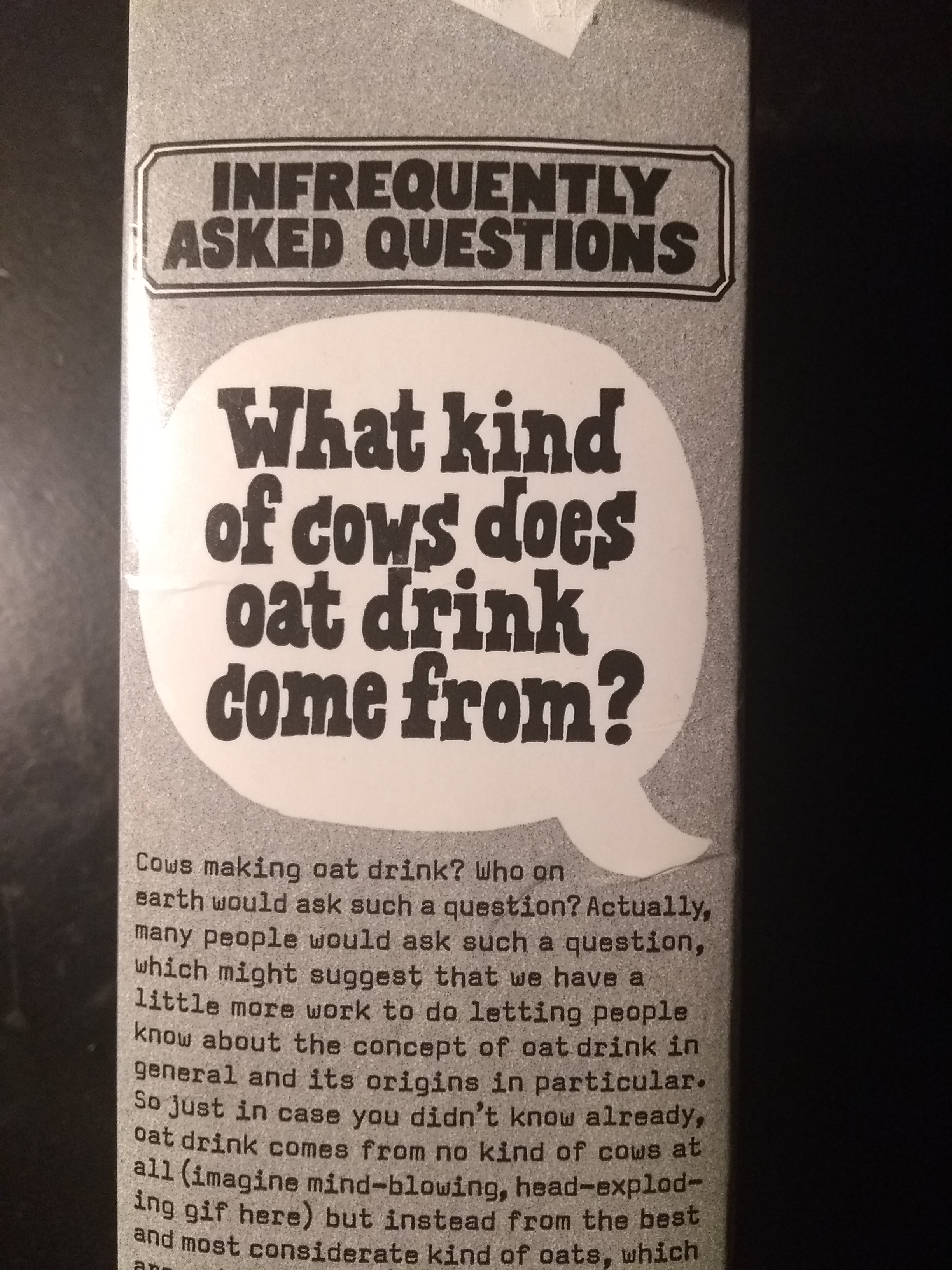 Selbst der hohe ökologische Anspruch kommt auf diese Weise eingängig über die Rampe. Eine der „Infrequently Asked Questions“ auf den Packungen lautet: „If oat drink really helps the planet, can I just pour it directly into the earth?“ Das wird mit heiligem Unernst eingehend beantwortet, und man fühlt sich danach etwas klüger und zugleich gut unterhalten. Mehr kann ich doch von gutem Marketing nicht verlangen. Die Produktion ist übrigens 2021 um 57 Prozent gegenüber dem Vorjahr gestiegen.
