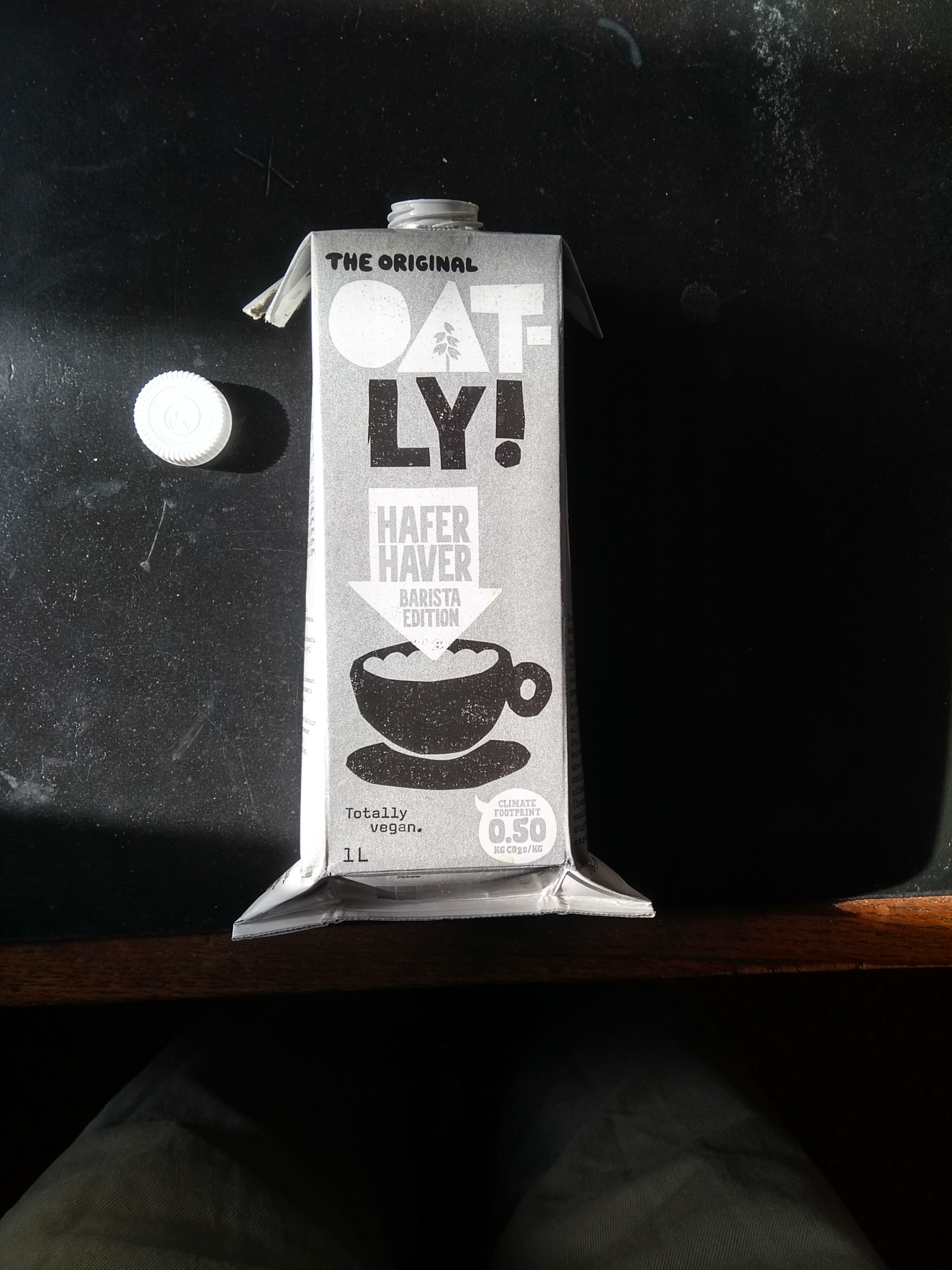 Nach dem Horrorbeispiel aus der Servicewüste im Bereich Mietwagen jetzt eine selbst erlebte Gegenerfahrung: exzellentes Beschwerdemanagement eines auch sonst sehr munter wirkenden Unternehmens aus der Lebensmittelbranche. Die schwedische Oatly AB stellt „Milch“-Produkte aus Hafer mit dem Hinweis „Wow – No Cow!“ her. Die hier abgebildete Barista Edition des Haferdrinks ist der erste und bisher einzige Ersatz für Kuhmilch oder Sahne, die ich meinem Kaffee mit gutem Gewissen zumute, und zwar gerne und ohne im Strahl zu kotzen.